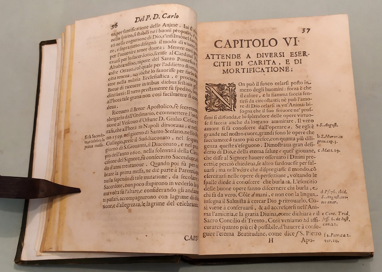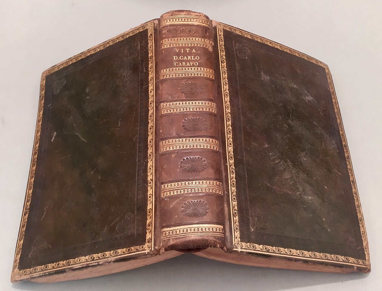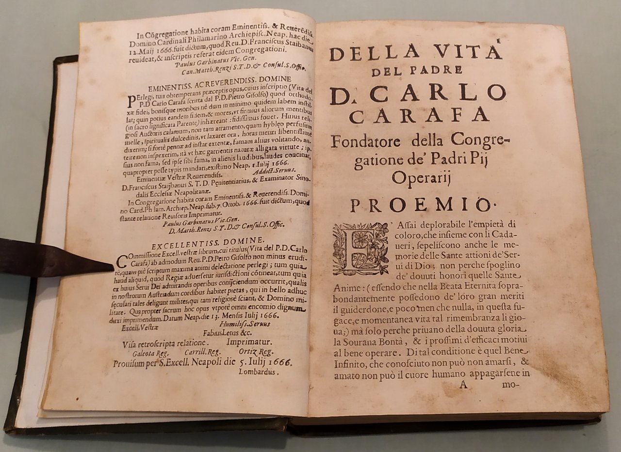 In Napoli, per Luc' Antonio di Fusco, 1667. In 8vo (cm.20x15); pp.8n.nn.,468. Vignetta al frontespizio. Ritratto del Carafa all'antiporta di F. Pesca. Legatura ottocentesca in bazzana verde, dorso con titolo e fregi in oro ed a secco. Piatti inquadrati da fregi a secco ed in oro con angoli decorati a secco ed in oro.