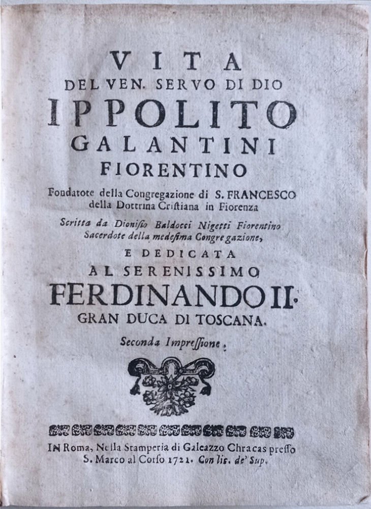 Vita del ve. servo di Dio Ippolito Galantini, fiorentino, fondatore della congregazione di S. Francesco della dottrina cristiana in Fiorenza.