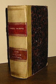 8vo (cm. 17,8), 183 pp. con il ritratto ripiegato della Principessa in antiporta inciso su rame da I. B. Cecchi (unito) Delécluze E.-J., Donna Olimpia. Nouvelle édition, Paris Michel Lévy frères éditeurs 1872, 2 cc.nn., 356 pp. (unito) Capranica Luigi, Donna Olimpia Pamfili. Romanzo storico. Terza edizione, Milano Fratelli Treves, 1875, 2 cc.nn., 366 pp., 1 c.nn. Solida legatura inizi ‘900 in mz. pergamena con piccoli angoli. Titoli oro al dorso su doppio tassello in pelle. Due carte aggiunte ms. all’inizio del volume. Alcuni aloni sul ritratto e sulle ultime carte della prima opera, altre ingialliture sparse, ma nel complesso un buon esemplare di questa inconsueta raccolta di scritti sulla Principessa Olimpia. Non comune l’opera anonima del Leti e quella del Delécluze.