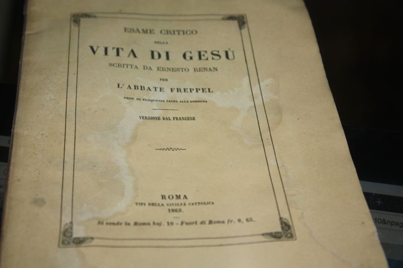 VITA DI GESU' ERNESTO RENAN PER L'ABBATE FREPPEL TIPI DELLA CIVILTA' CATTOLICA 1863