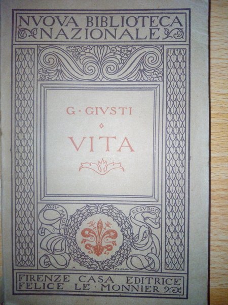 [Biografia Giusti Poeta](cm. 18.2) Brossura editoriale, titolo in rosso entro ricca cornice, -pp.158. interno pulito qualche minuscolo segnetto a penna su due tre pagine. lievi mende alla brossura e al dorso, per altro ottimo. Un Autobiografia del poeta toscano, nato a Monsummano, creata attraverso la raccolta di suoi scritti, racconti, epistole curata da Biagi Guido[n53]