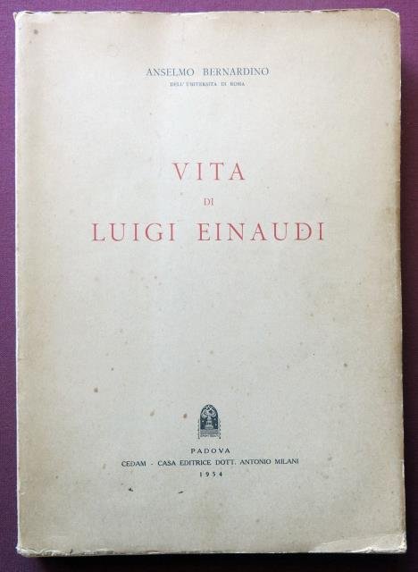 Cedam, Casa Editrice Dott. Antonio Milani, Padova, 1954. In 4to piccolo, ritratto fot. di Luigi Einaudi in antip., pp. XIV (Indice, Sommario, Al Lettore), 246 (con Indici), ill. fot. in b/n n. t., bross. edit. Ottima, puntuale e non comune biografia su Luigi Numa Lorenzo Einaudi (Carrù, 1874 - Roma, 1961), economista, accademico, politico e giornalista italiano, nonché secondo presidente della Repubblica Italiana e padre di Giulio Einaudi (fondatore della omonima casa editrice). Bernardino Anselmo fu membro dell'Assemblea Costituente. Intellettuale ed economista di fama mondiale, Luigi Einaudi è considerato uno dei padri della Repubblica Italiana Anselmo Bernardino Università di Padova. Rare segnature a lapis da studio, normalmente ingiallito, buono.