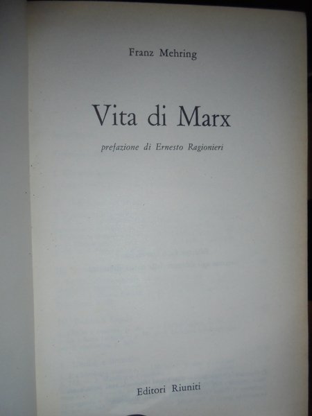 Franz, Mehring. Roma, Editori Riuniti, 1972. Vita di Marx. Prefazione di Ernesto Ragionieri. In-8°, similpelle edt. xlviii, 557 pp. Non è presente la sovracopertina ma ottimo lo stato di conservazione. Uff. pacco C. carc.