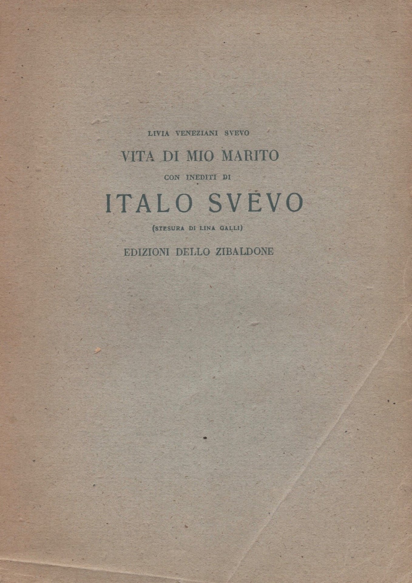 Brossura editoriale, sedici fotografie in B/N e un facsimile fuori testo, esemplare n. 249, stesura di Lina Galli, comprende numerose lettere e frammenti di Svevo e una lettera della stessa Galli. Pieghe al piatto anteriore e una piccola mancanza al dorso.