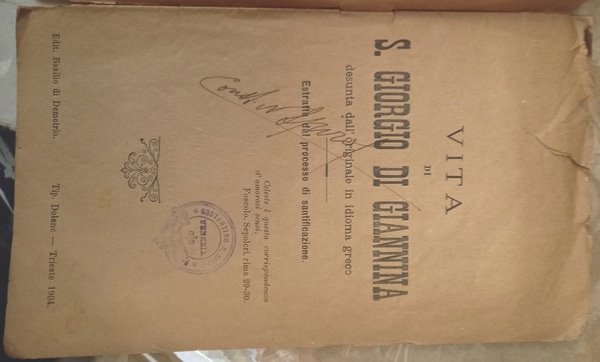 Vita di S. Giorgio di Giannina desunta dall'originale in idioma greco. Estratto dal processo di santificazione.