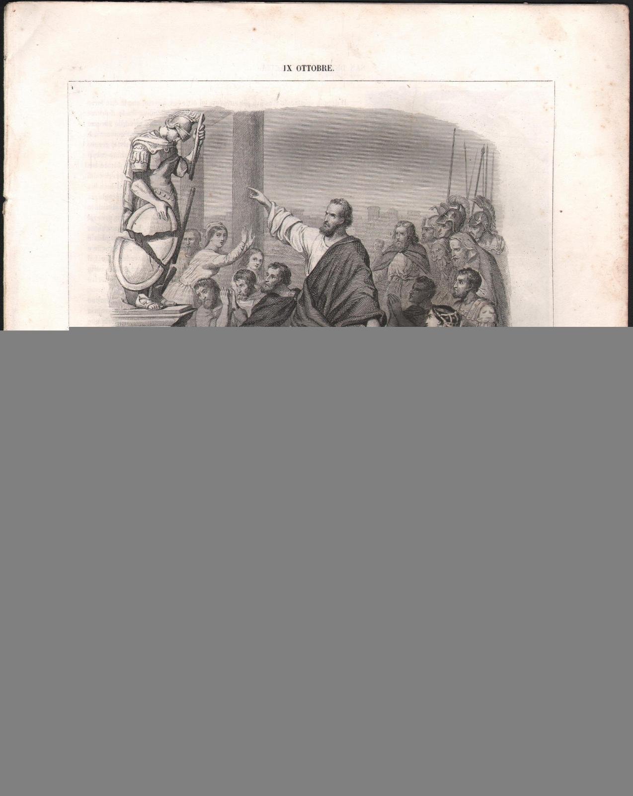 opuscolo di pp. 8 tratto da. "Vite de Santi Parigi 1863 cm. 29 x 22,5 incisione in acciaio alla prima pagina e bellissime xilografie all'interno. Alcune fioriture e macchie che non pregiudicano la lettura piccoli strappi ai margini