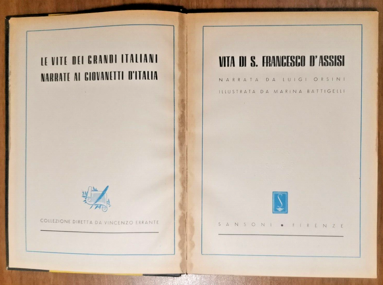 VITA DI SAN FRANCESCO di Luigi Orsini 1947 Sansoni Libro illustrato Infanzia