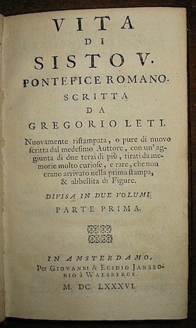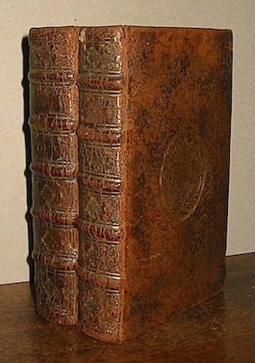 12mo (cm. 15,8), 2 Voll., 12 cc.nn., 480 pp., 12 cc.nn. (ultima bianca); 12 cc.nn., 480 pp., 12 cc.nn. (ultima bianca), con 3 tavv. f.t. incise su rame per ciascun volume. Legature settecentesche in piena pelle con nervi e fregi oro al ds. alle armi di Robert Purgot (1727-1781), economista e uomo politico francese. Decorazioni in oro, soprattutto ai ds., notevolmente stinte, minime mancanze agli angoli e ai margini dei piatti, altrimenti ottimo esemplare. Seconda edizione con aggiunte (la prima apparve a Losanna nel 1669). Rossetti, 6177; Vinciana, n. 5040, descrive l’edizione del 1698. Opera di grande successo, ristampata più volte, in una edizione poco comune.
