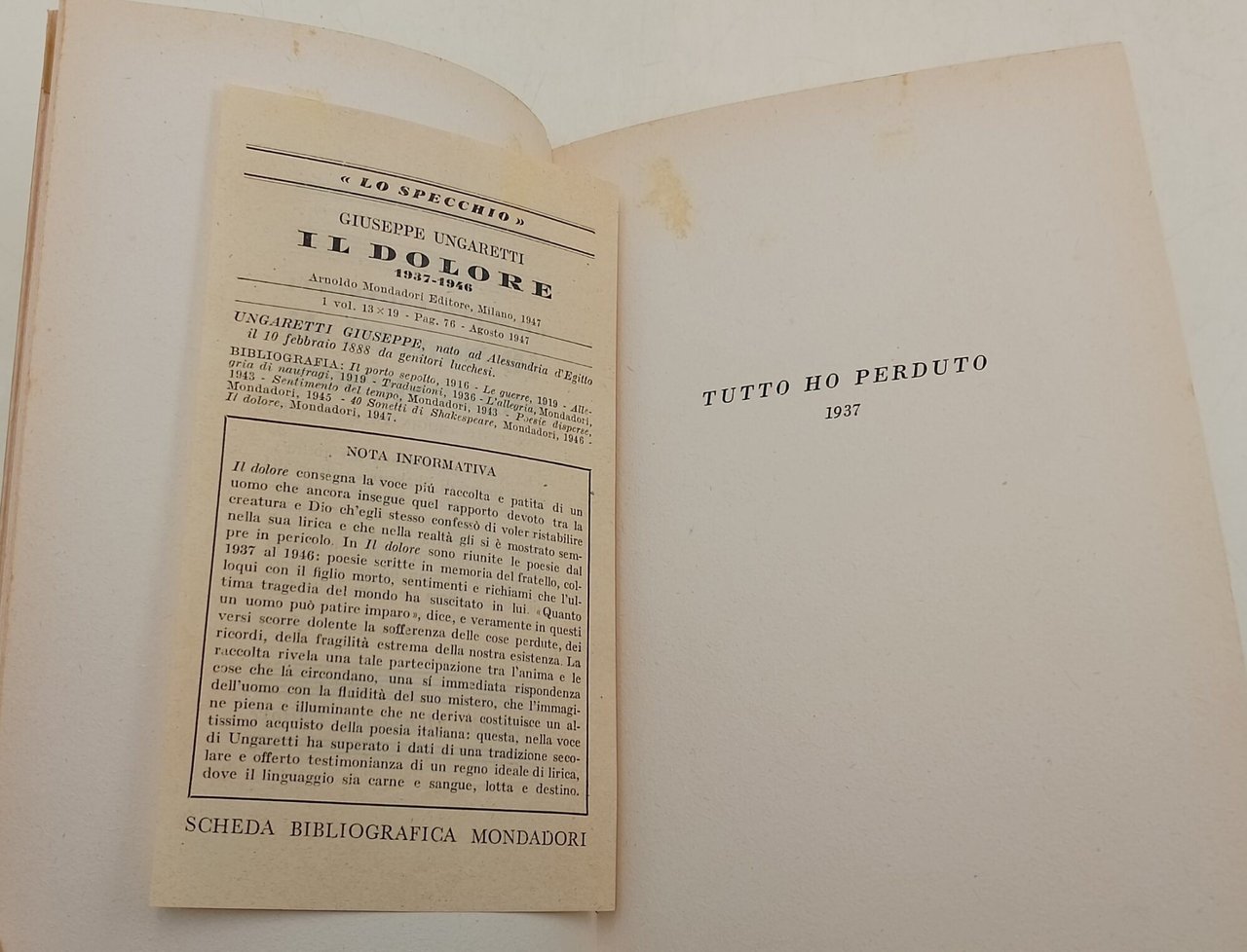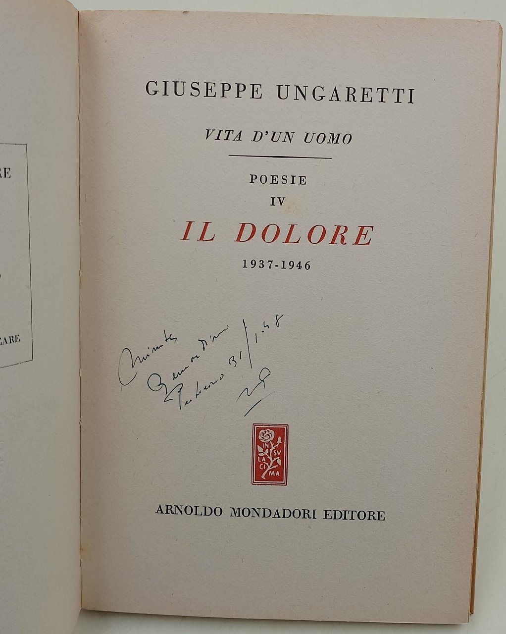 Vita di un uomo-Poesie IV - Il dolore- 1937-1946