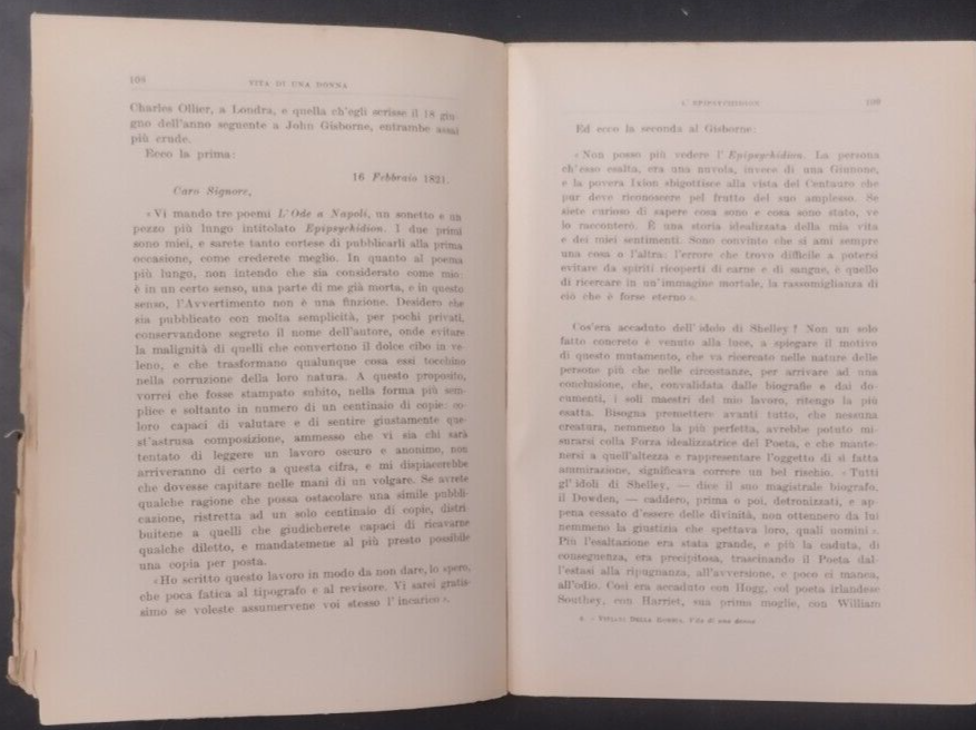 VITA DI UNA DONNA di Enrica Viviani Della Robbia. Biografia romanzata di Teresa Viviani della Robbia, la Emily di Shelley. Sansoni Editore, 1936 . 243 pagine, illustrazioni in bianco e nero fuori testo. Copertina editoriale in brossura. Stato di conservazione: molto buono (pagine normalmente ingiallite ma ancora intonse) Libro usato saggistica storia letteratura