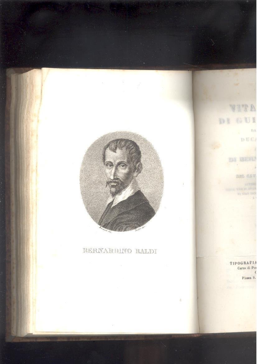 DUE VOLUMI RILEGATI IN UNO IN 8°. VOL1°) pp.XVI,265, INDICE. IN ANTIPORTA RITRATTO DI<BR>GUIDOBALDO DUCA DI URBINO, INCISO DA RADOS E DISEGNATO DA BRUMATI.CON VELINA DI PROTEZIONE. VOL 2°) pp.245+ TESTIMONI ALLA PRESENTE ISTORIA, ANGELUS POLITANUS,<BR>INDICE.NELLA SECONDA ANTIPORTA RITRATTO DI BERNARDINO BALDI INCISO DA RADOS E DISEGNATO DA BRUMATI CON VELINA DI PROTEZIONE. AL VOLUME SONO ALLEGATI DUE FASCICOLI:1 ) NOTIZIE STORICHE DI URBINO DI pp.55, STAMPATO A URBINI DIE 20 MAII 1846,pro ILLmo et Revmo D.D.ALEXANDRO ANGELONI Archiep.Urbini.<BR>2) PER RICHIAMARE UNA SPECIALE BENEVOLA CONSIDERAZIONE DEL GOVERNO DEL RE GALANTUOMO SULL'ANTICA SEDE DEI DUCHI DI MONTE FELTRO E DELLA ROVERE, PATRIA DI RAFFAELLO, SI PRESENTANO IN POCHI CENNI LE PIU INTERESSANTI MEMORIE SULLA CITTA DI URBINO. pp.11, URBINO 10 FEBBRAIO 1864, DOTT. NATALE - PAOLO PROF. ALIPPI.<BR>L'OPERA DEL BALDI E PUBBLICATA PER CURA DEL CAV. CARLO DE' ROSMINI.BELLA LEGATURA COEVA IN MEZZA PELLE CON TITOLO E FREGI IN ORO AL DORSO. PIATTI RIGIDI CARTONE MARMORIZZATO. OTTIMA CONSERVAZIONE GENERALE. RARO INSIEME. ID, 7106
