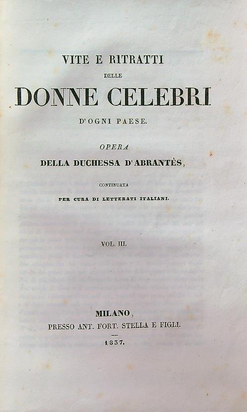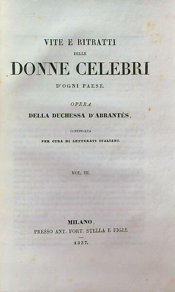 Vita e ritratti delle Donne Celebri d'ogni Paese. 3vv