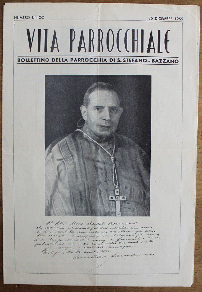 <p>32 cm, brossura con ritratto del Cardinale Lercaro alla cop. p. 6 con vari articoli dedicati al festeggiato. Segno di piegatura in quattro</p>