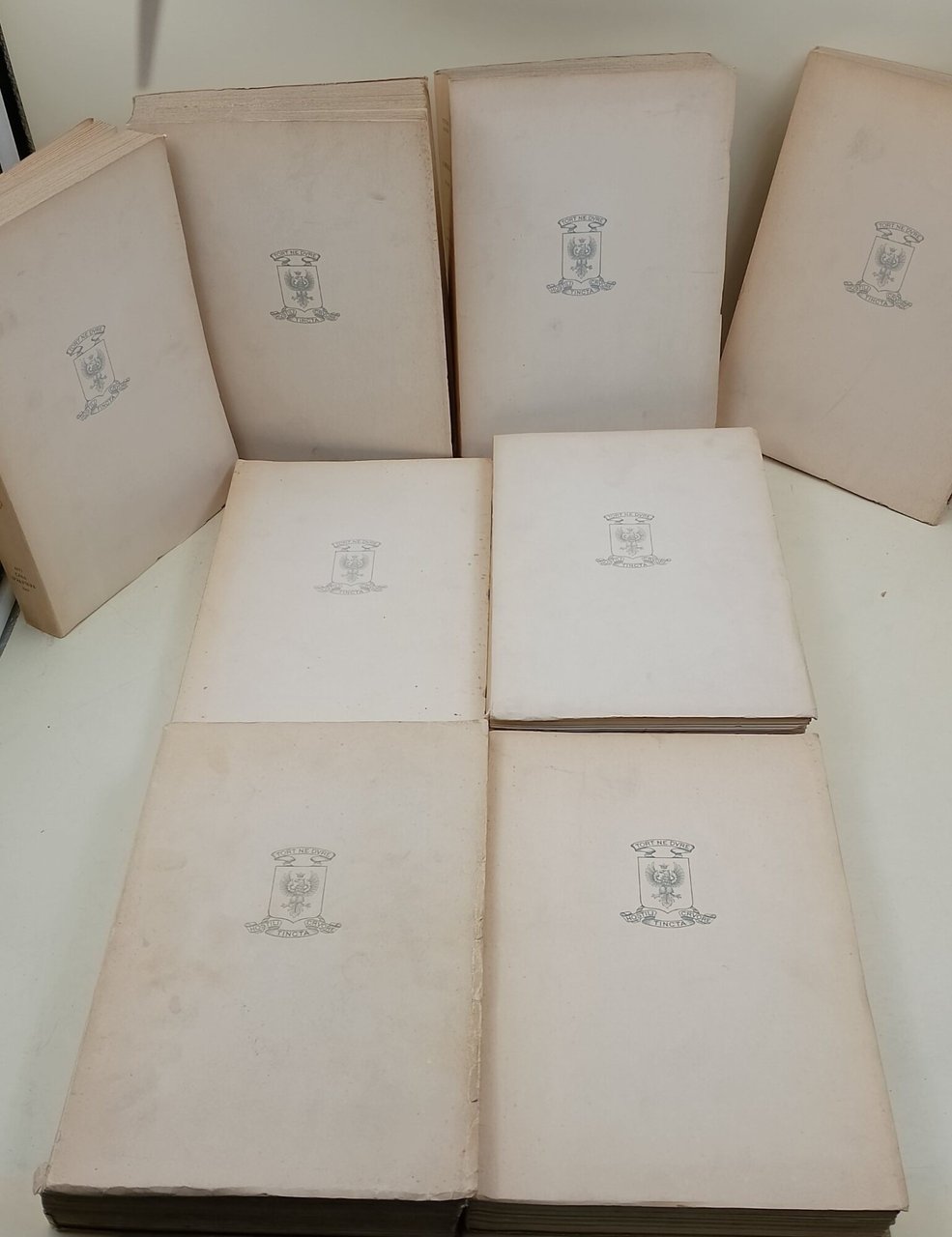In 8', br. ed., pp. LXIV, 369+319+LXVII, 432+475+LXVII, 451+295+XXXVII, 513+362; segni d'uso e di sporco alle cop., piccola mancanza al piede del dorso del vol. scritti morali ed alcune sottolineature a matita n.t., interni in buono stato, parzialmente intonsi, rare fioriture, minimi segni del tempo. ***Due to bureaucratic reasons, books dated over 70 years old cannot be immediately exported, please contact us before placing the order.***