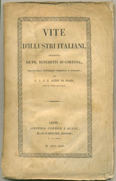 Vite d'illustri italiani tratte dall'autografo corretto e supplito per S. L. G. E. Audin di Rians.