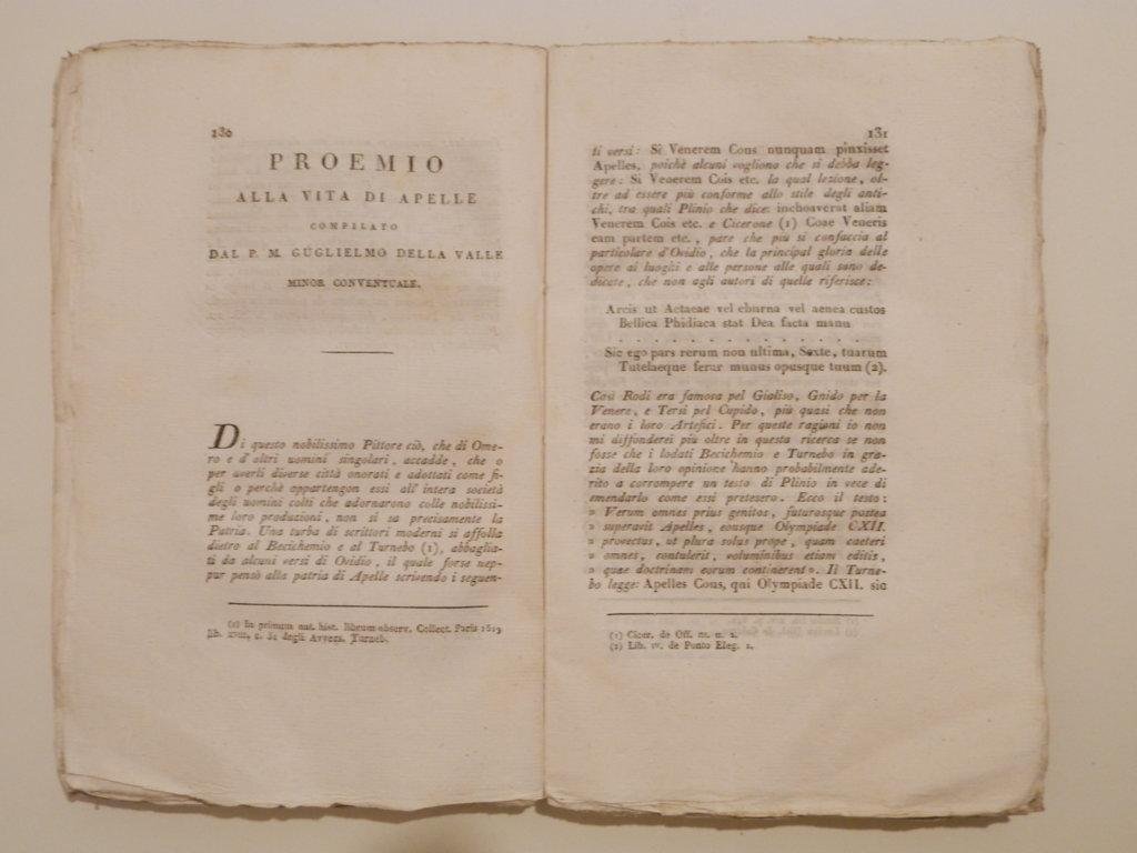 8°, 140x220 mm, pp. 294, brossura coeva in carta azzurrina con piccole mancanze alla prima copertina, titolo su etichetta al dorso, ritratto di Dati inciso all'antiporta, esemplare molto buono. Vite di Zeusi, Parrasio, Apelle, Protogene, e altri pittori dell'antichità. La prima edizione dell'opera è del 1667. Carlo dati fu un filologo e accademico italiano del XVII secolo, collaboratore della terza edizione del vocabolario della Crusca. *** TUTTI I NOSTRI LIBRI SONO VISIBILI PREVIO CONTATTO MAIL O TELEFONO NELLA NUOVA SEDE DI MILANO: LIBRERIA COSMOPOLIS, VIA JOMMELLI, 22. ***