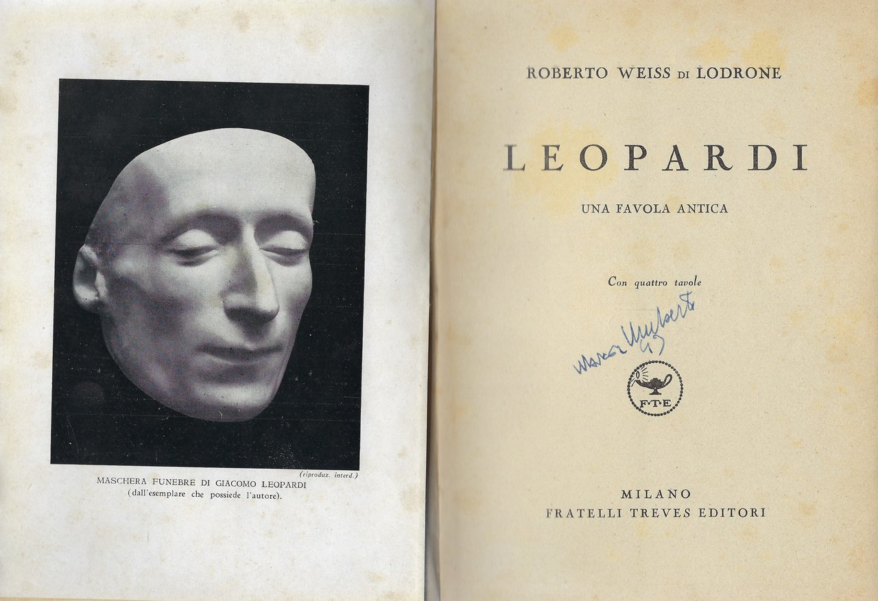 All'antiporta tavola in bianco e nero con la maschera funebre di Leopardi.