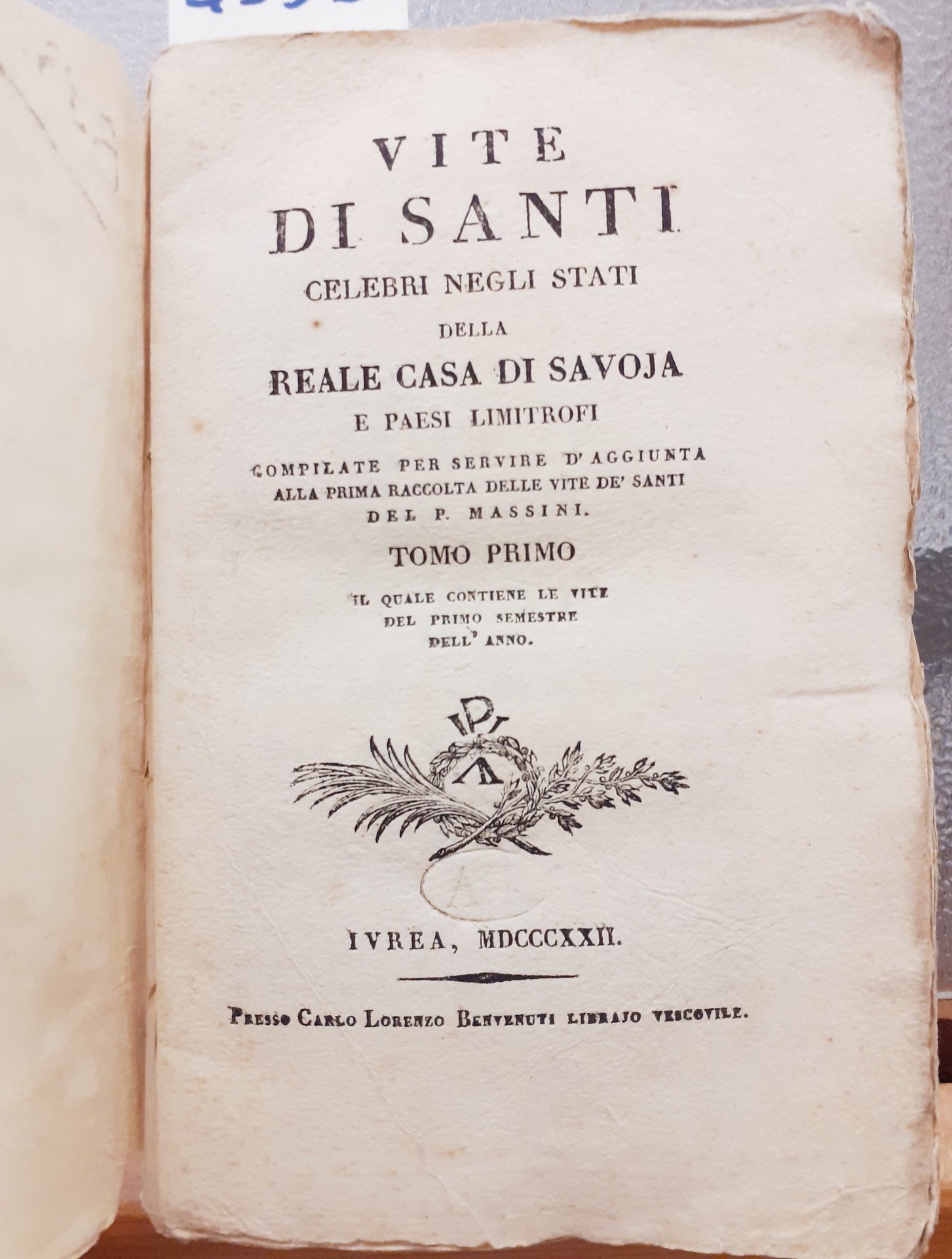 VITE DI SANTI CELEBRI NEGLI STATI DELLA REALE CASA DI SAVOJA e paesi limitrofi compilate per servire d'aggiunta alla prima raccolta delle vite de' santi del P. Massini. Tomo I, il quale contiene le vite del primo semestre dell' Anno. Tomo II, il quale contiene le vite del secondo semestre dell'anno.