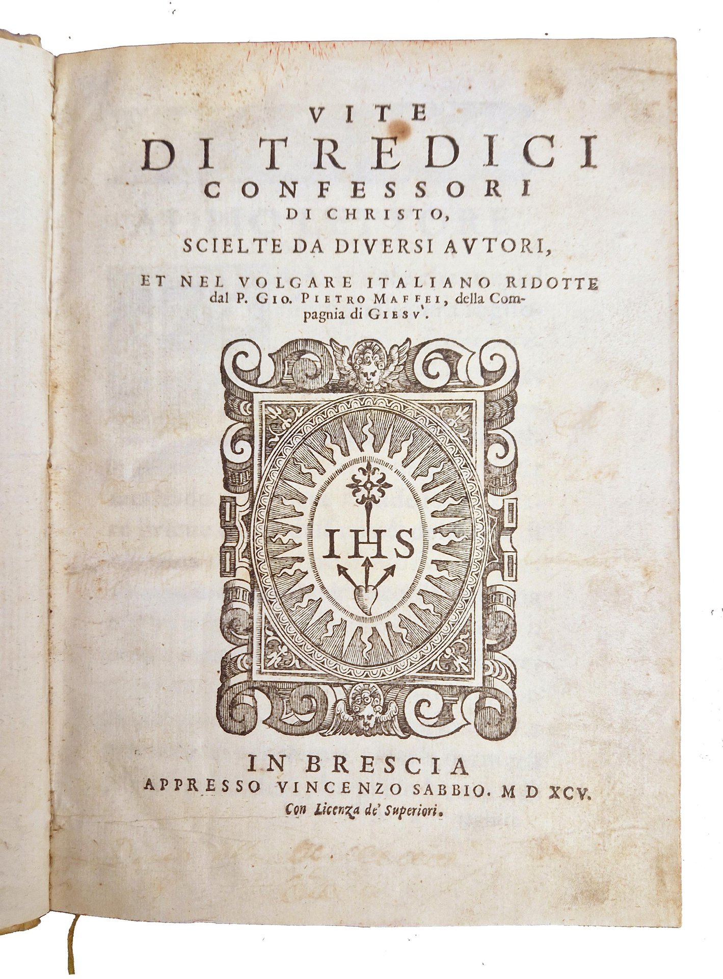 Vite di tredici confessori di Christo; scielte da diversi autori, et nel volgare italiano ridotte dal P. Gio. Pietro Maffei, […].