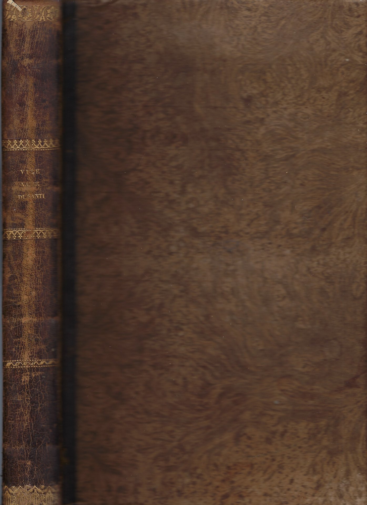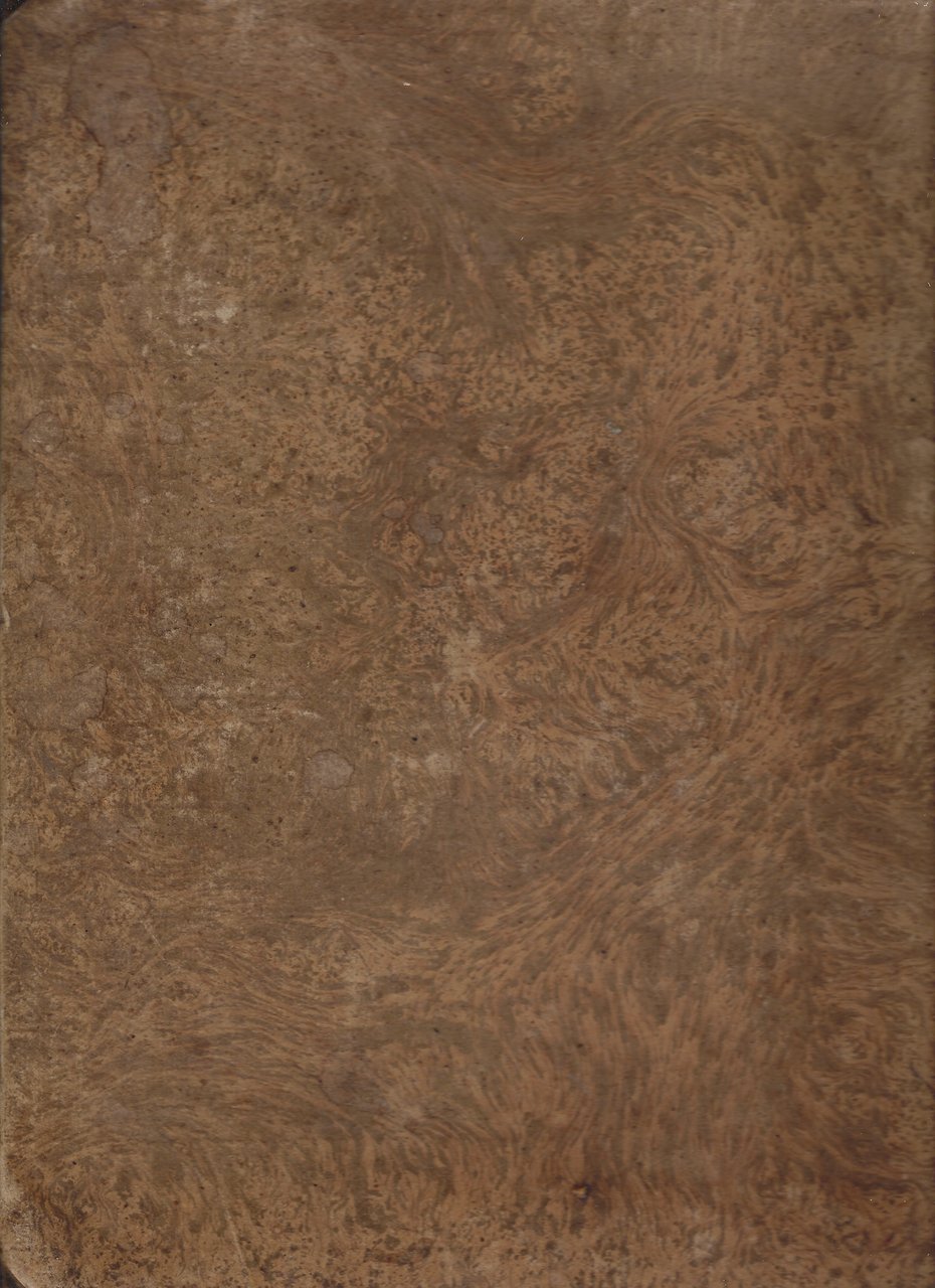 Cartonato editoriale marmorato con titoli e fregi in oro al dorso, rinforzato in pelle.
