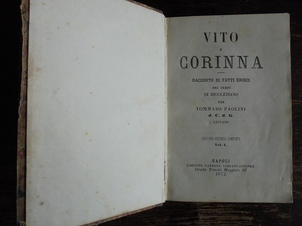 VITO E CORINNA. RACCONTO DI FATTI EROICI DEI TEMPI DI DIOCLEZIANO Seconda Edizione completa.