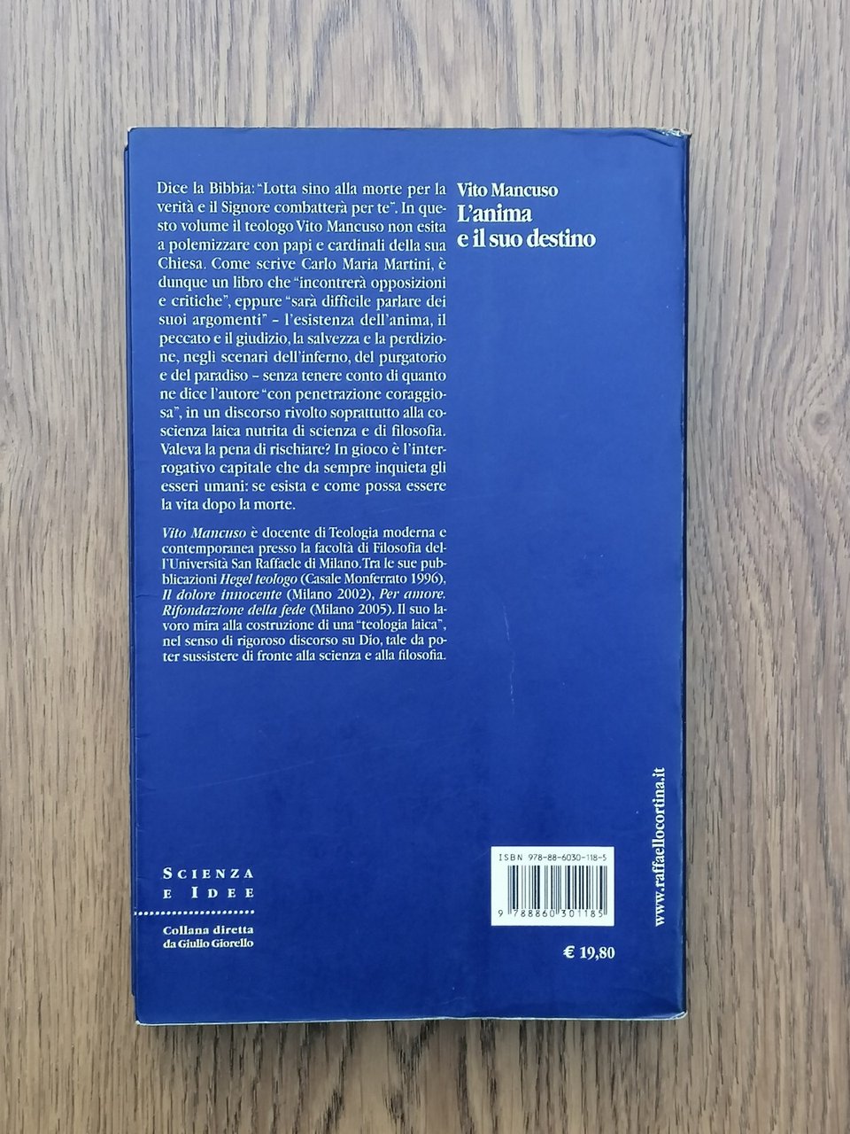 Vito Mancuso L'Anima e il suo Destino Libro Cortina Prima Edizione 9788860301185