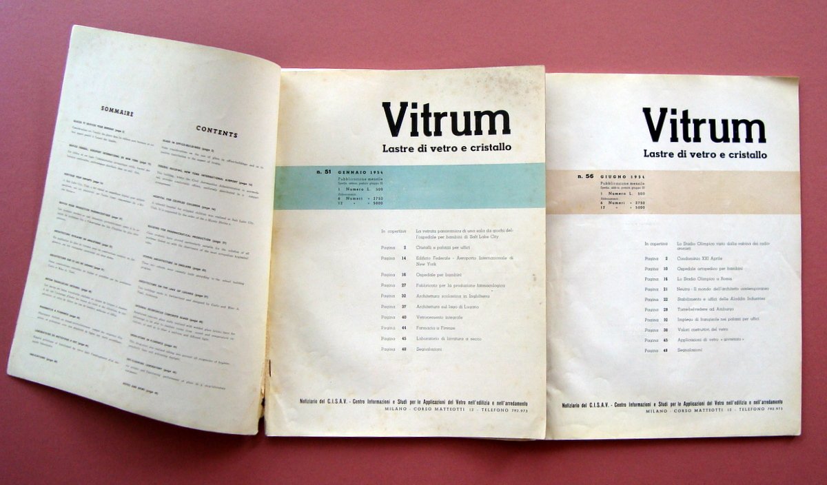 Vitrum 2 numeri rivista n 51 56 1954 vetro cristallo edilizia arredamento
