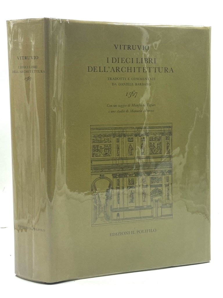 Cartonato editoriale con sovraccoperta, cm 28 x 20, pp XLVIII (10) 506 (4). Pregevole edizione anastatica, pubblicata dalle edizioni di Alberto Vigevani in settecento esemplari su carta vergata come ottavo volume della collana «Libri Rari», della seconda e definitiva edizione del Vitruvio commentato e tradotto da Daniele Barbaro, apparsa nel 1567. Alla ristampa integrale dell’opera, compreso il raffinato apparato iconografico approntato dal Palladio, sono preposti un saggio di Manfredo Tafuri e uno studio di Manuela Morresi che raffronta le due edizioni (1556 e 1567) dell’opera.