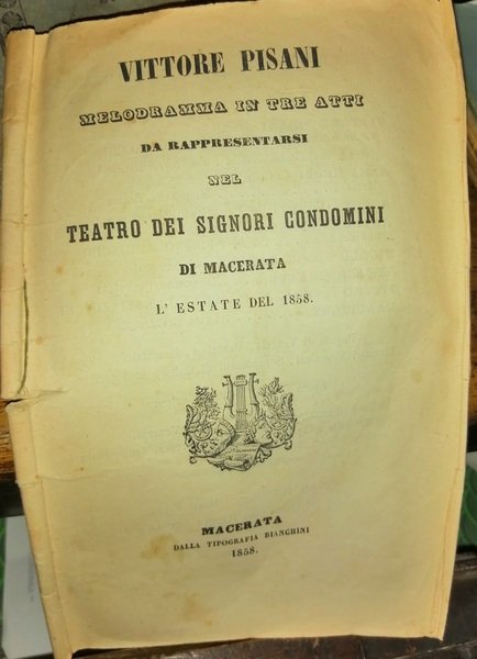 Vittore Pisani. Melodramma in tre atti da rappresentarsi nel Teatro dei Signori Condomini di Macerata, l'estate del 1858