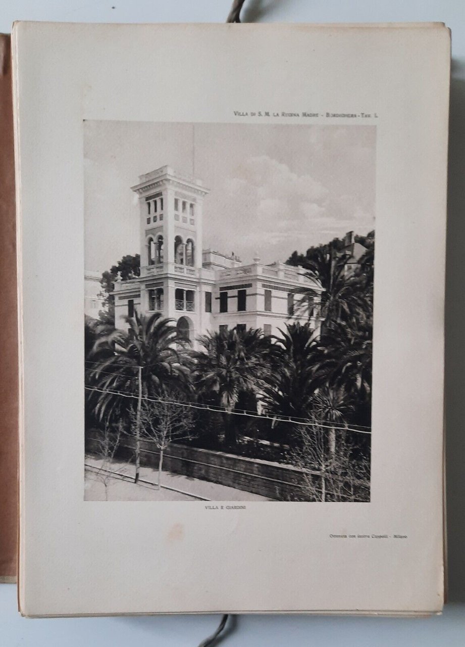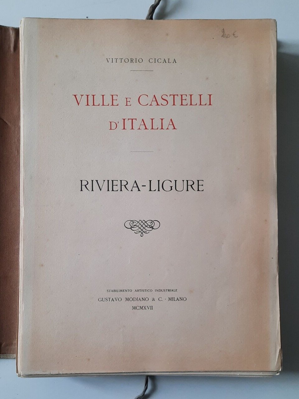 VITTORIO CICALA VILLE E CASTELLI D'ITALIA RIVIERA LIGURE C. GHELFI 1917In 4°, legatura editoriale, copertina telata con laccetti, pagine e tavole sciolte. ill. in b/n.In ottime condizioni, tenui macchie alla copertina.