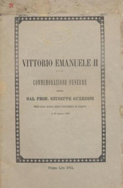Vittorio Emanuele II. Commemorazione funebre letta dal Prof. Giuseppe Guerzoni nell'Aula Magna dell'Università di Padova il 23 Gennaio 1878.