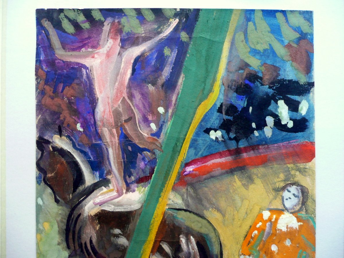 Quadro originale (tempera), Il Circo" Tempera originale di Vittorio Nomellini firmata dall'autore S. d. (anni '30 - '40 del Novecento circa); tempera originale a colori su foglio in cartoncino, firmata dall'autore in rosso al margine inf. (vedi foto); al retro breve didascalia descrittiva. Tempera inserita entro passepartout in cartoncino di colore blu. Cm 63,5x44 (passepartout); cm 49x35,5 (tavola). Condizioni di conservazione Tempera ben conservata con alcune lievi tracce di pieghette, minima rifilatura ai margini; margine inf. con piccole poco visibili ombre di gore che non comportano danni o perdite di colore (vedi foto). Tempera originale, firmata dall'autore. EXTRA.0101 N "