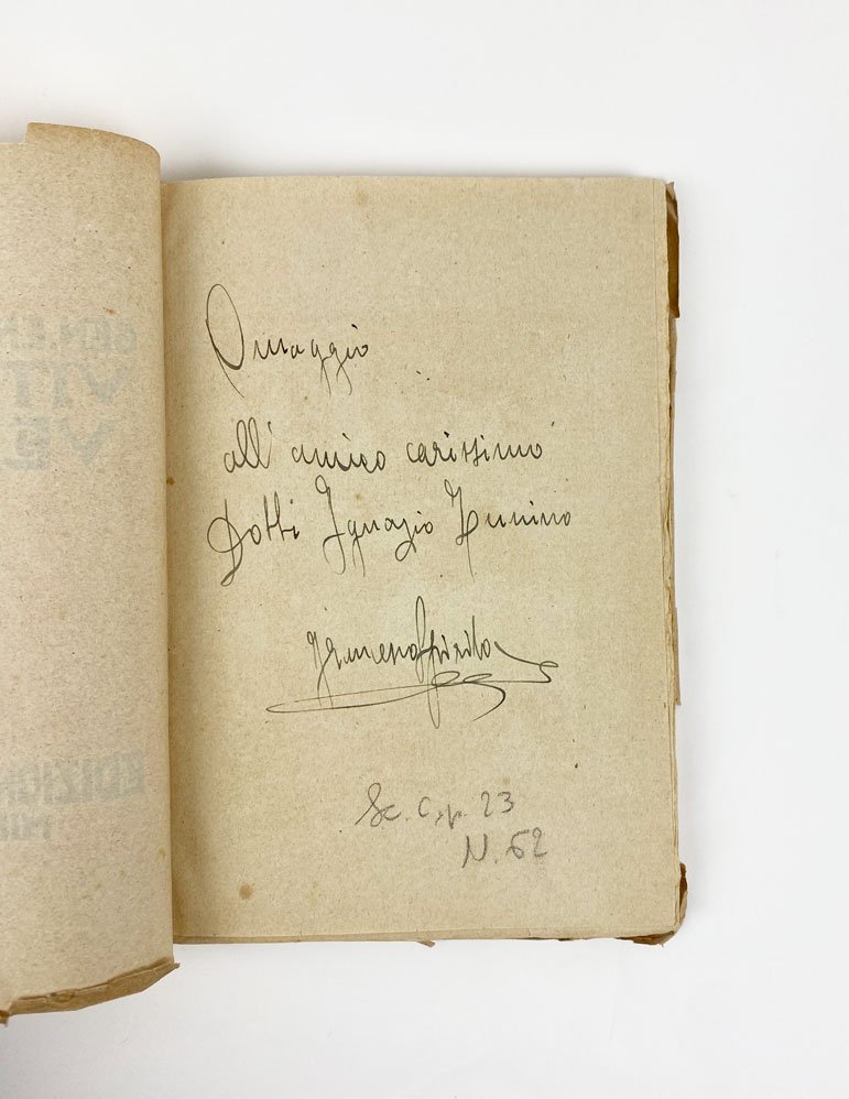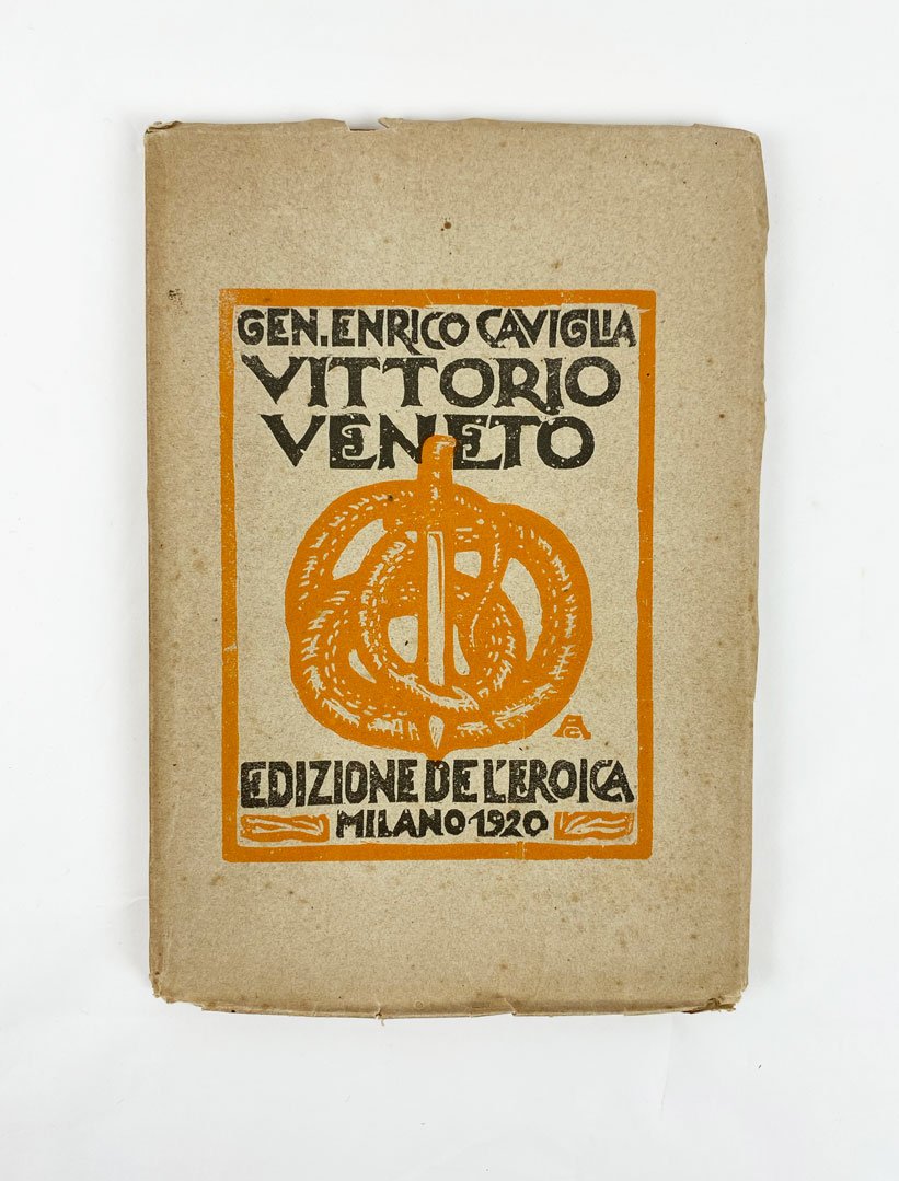 LIBROPrima edizione.Ottimo esemplare in barbe. Al frontespizio dedica di precedente possessore.Enrico Caviglia racconta in questo piccolo volume, pregiato dalle xilografie di Armando Cermignani, la battaglia di Vittorio Veneto, alla cui risoluzione contribuì in modo determinante. Dopo l’esperienza nel primo conflitto mondiale, il generale divenne uomo di fiducia del governo, nominato Senatore del regno e Ministro della Guerra sotto al primo governo Orlando.