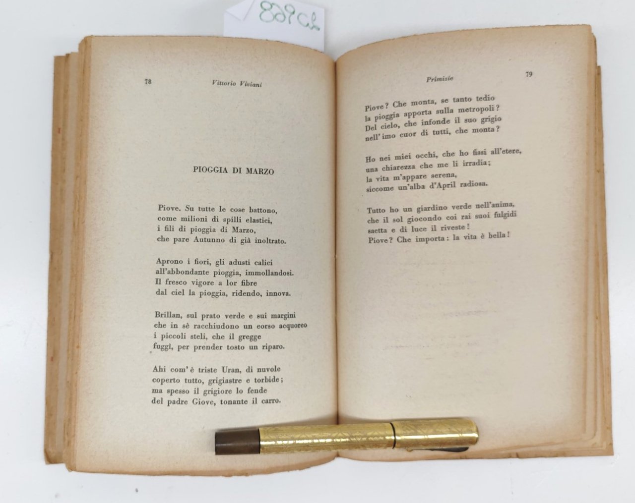 Legatura morbida editoriale in condizioni accettabili, libro deformato al dorso, vedere immagine, piatti bruniti con sporcizie e bruniture, dorso brunito con sporcizie e abrasioni ai margini, tagli bruniti e irregolari, interno in condizioni accettabili, all'antiporta dedica e firma dell'autore, brunitura alle pagine interne e alcune fioriture che non vanno a disturbare la lettura, numero pagine 138 dimensioni cm 19,4 * 13,3