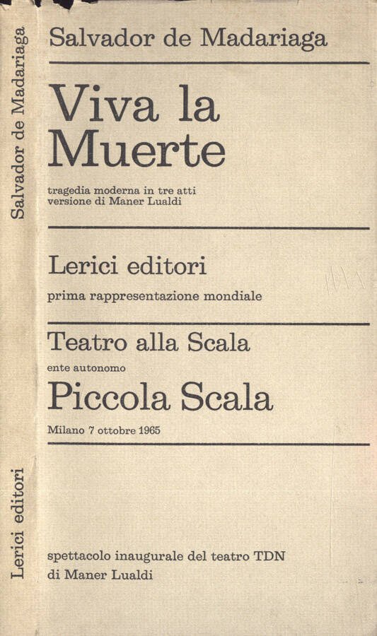 Volume brossurato in cartoncino semirigido, protetto da sovraccoperta con bandelle, leggermente brunita e lisa. Buonissimo lo stato di conservazione, pagine perfettamente tenute, ossidate da tonalità seppia, come i tagli. Versione di Maner Lualdi. Rappresentazione tenutasi presso Piccola Scala, Milano, 7 otobre 1965. Volume n. XII ( 12 ) della collana. Numero pagine 133.