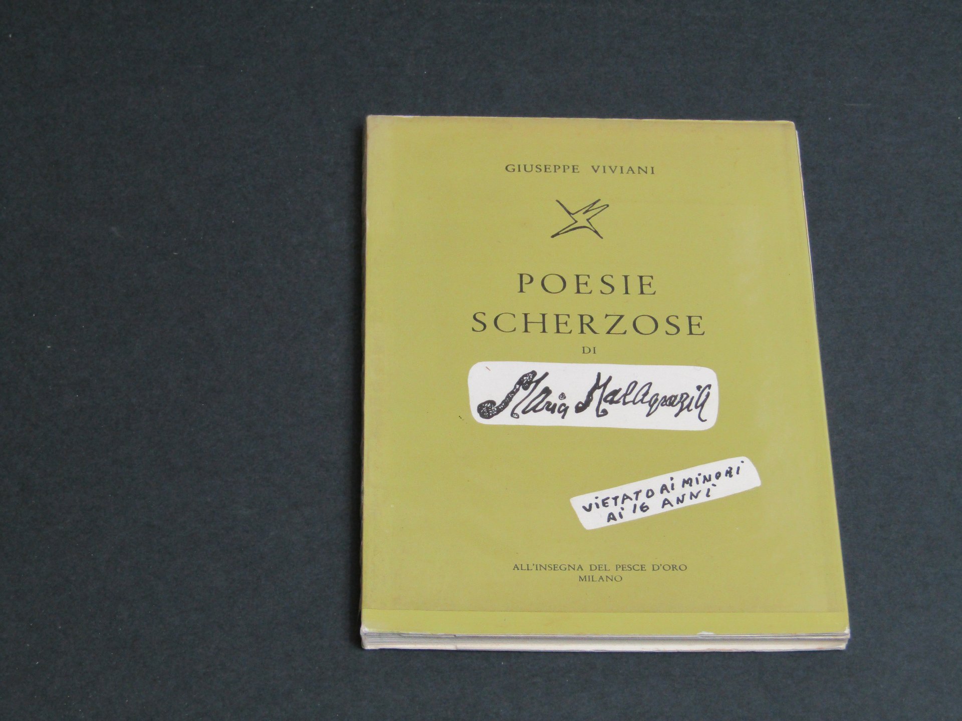 873 Viviani Giuseppe Viviani Giuseppe. Poesie scherzose di Maria Malagrazia. All'insegna del pesce d'oro. 1961. Tir. lim. 1000 es. ns. es. n.562/1000.. Milano, All'insegna del pesce d'oro 1961 italiano, in sedicesimo pp. 89 30465