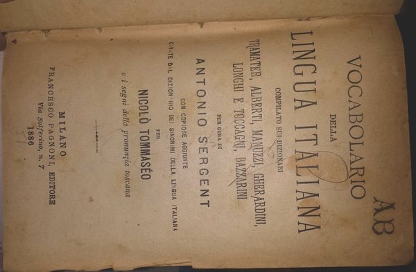 Vocabolario della lingua italiana compilato sui dizionari Tramater, D'Alberti, Manuzzi, Gherardini, Longhi, Toccagni e Bazzarini per cura di Antonio Sergent; con copiose aggiunte cavate dal dizionario dei sinonimi della lingua italiana per Niccolo Tommaseo e i segni della pronunzia toscana