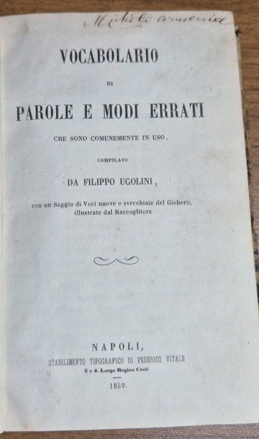 VOCABOLARIO DI PAROLE E MODI ERRATI IN USO Filippo Ugolini 1859 Libro Antico