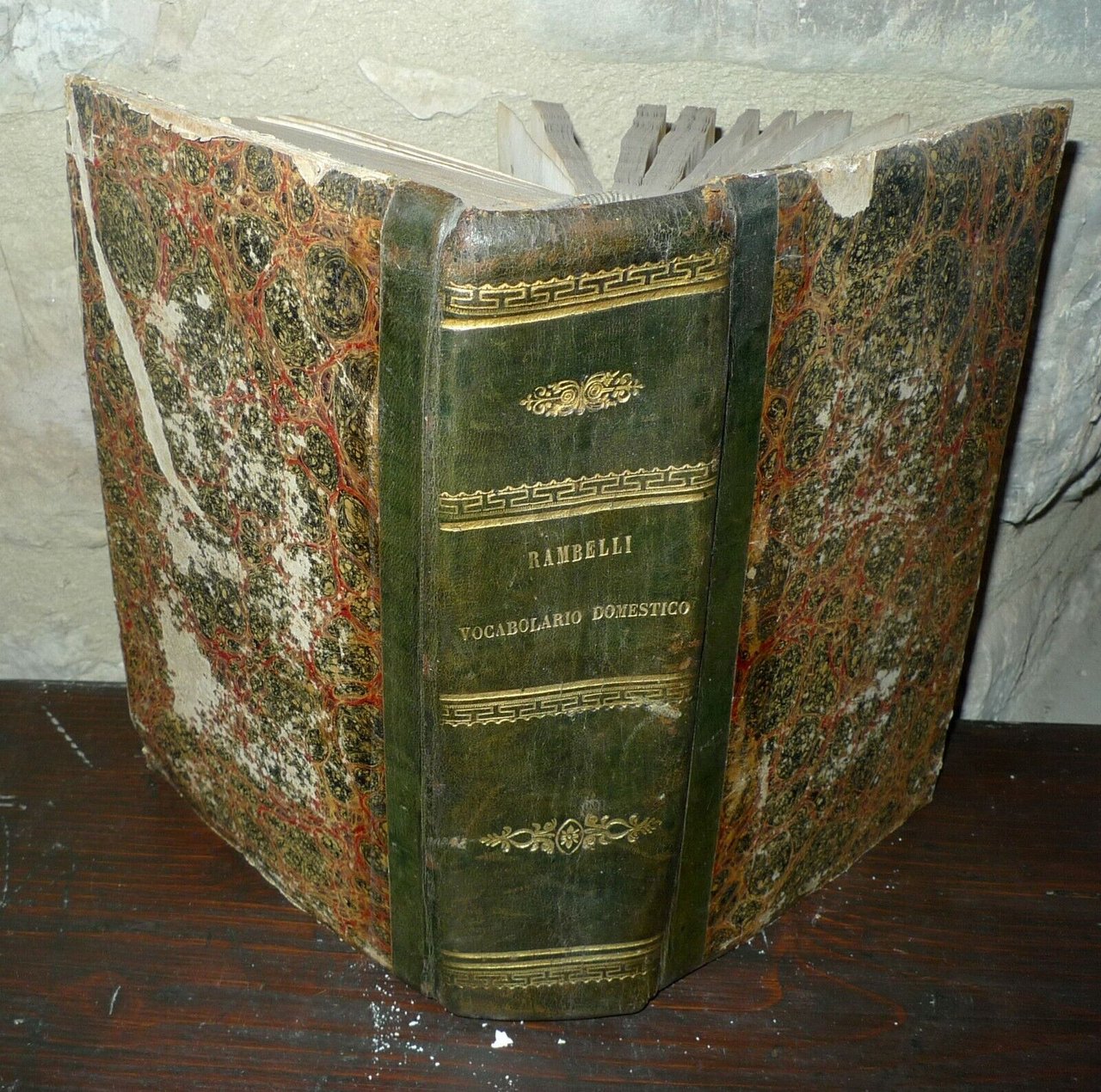 VOCABOLARIO DOMESTICOCOMPILATO DAGIANFRANCESCO RAMBELLI.Bologna, Tipografia di Giuseppe Tiocchi, 1850,copertina rigida, rilegatura in mezza pelle,23x14,5 cm., pp.XVI-988,peso: kg.1,3