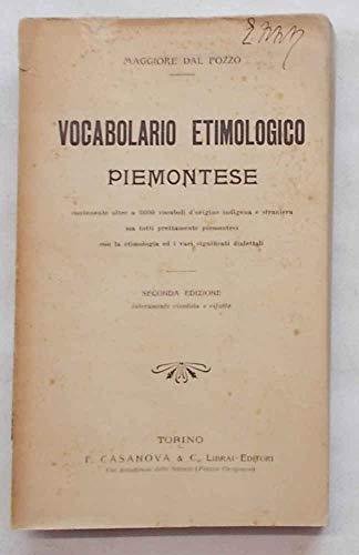 Vocabolario Etimologico Piemontese contenente oltre a 3600 vocaboli d'origine indigena e straniera ma tutti prettamente piemontesi con la etimologia ed i vari significati dialettali.