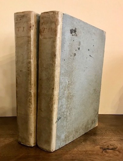 4to (cm. 25,5), 2 Voll., XXIV-590 pp., 1 c.nn., 56 pp.; XVI-546 pp., 104 pp. Frontespizi in rosso e nero. Legature coeve in mz. pergamena (lievi tracce d’usura marginali e qualche macchiolina ai piatti). Alcuni tenui aloni, sporadiche piccole macchie d’inchiostro e fioriture. Buon esemplare nel complesso.