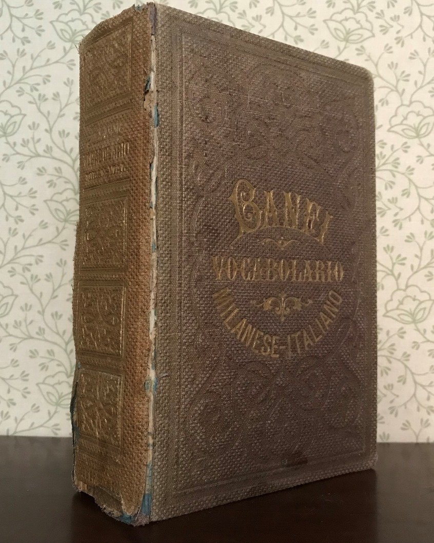 Volume in 8, tela editoriale impressa (difetti alle cerniere), titolo al piatto ed al dorso decorato in oro, sguardie, frontespizio, XXXI, 792 pp. Bell'esemplare del ricchissimo dizionario milanese, davvero esauriente. Tranne che per il difetto alle cerniere della legatura e le inevitabili, se pur lievi e sporadiche, fioriture della carta, il volume in buono stato, notevole e di scarsa reperibilit.