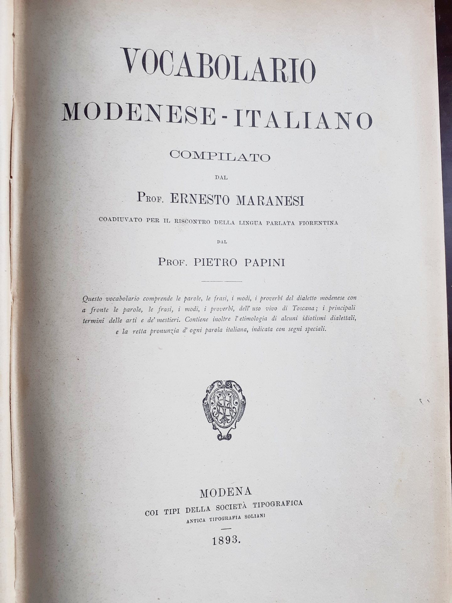 VOCABOLARIO MODENESE-ITALIANO, COMPILATO dal Prof. Ernesto Manaresi.