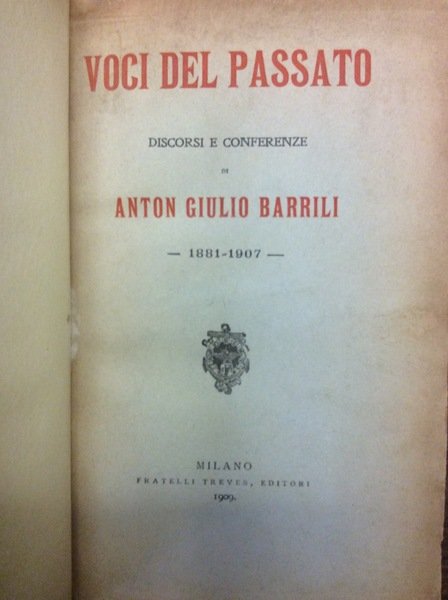 VOCI DEL PASSATO. - Discorsi e conferenze. 1881-1907.