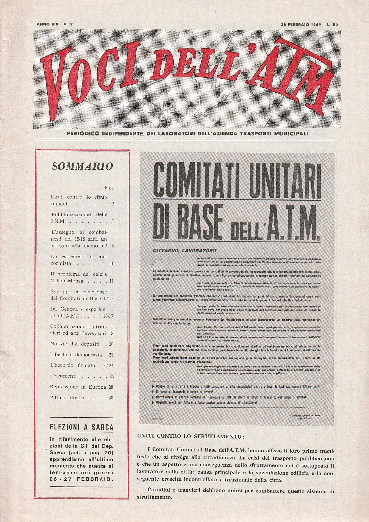 Voci dell'ATM. Periodico indipendente dei lavoratori dell'Azienda Trasporti Municipali. Anno XIX. No. 2. 23 febbraio 1969