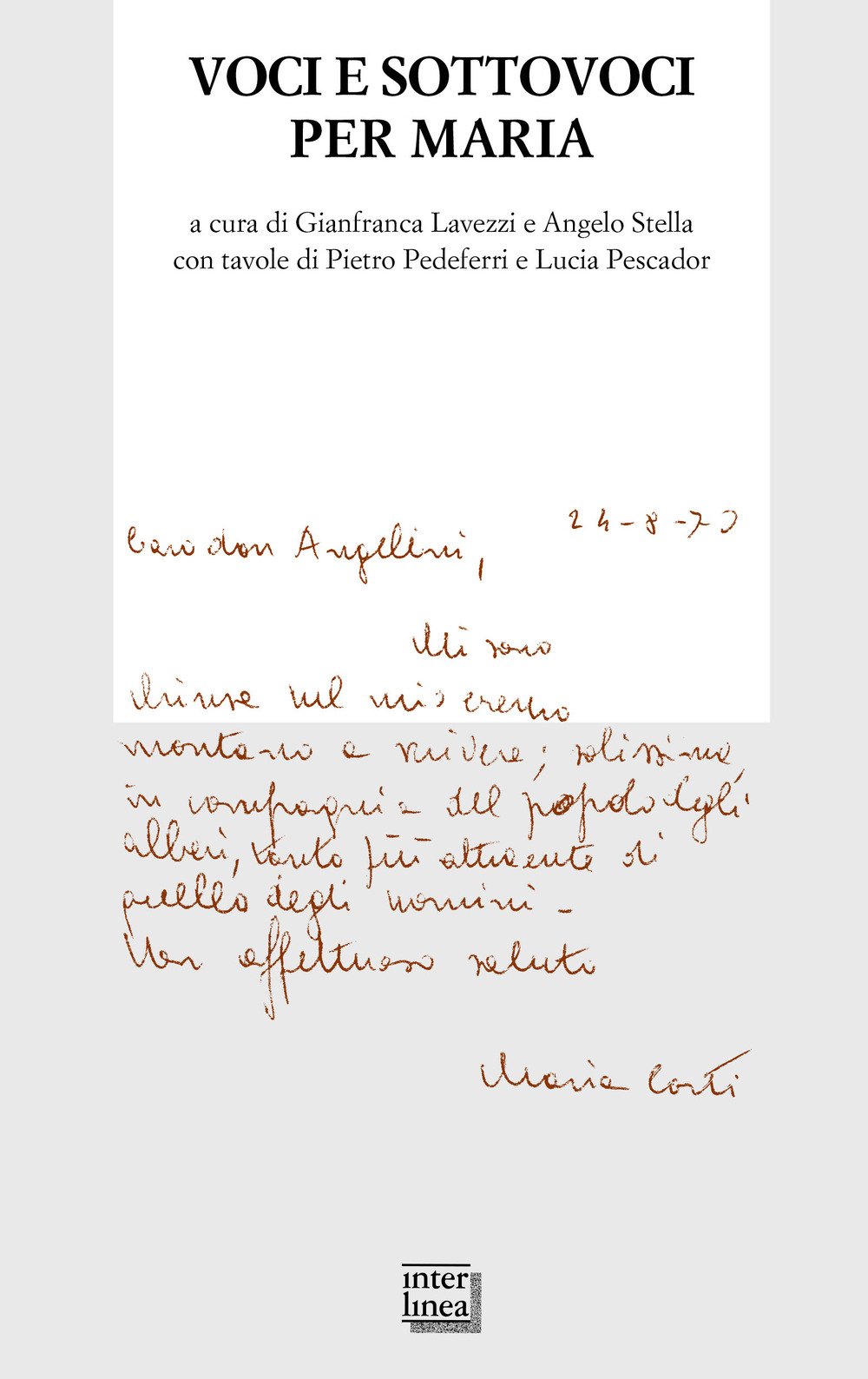 In occasione dei vent'anni della scomparsa di Maria Corti, la grande filologa creatrice del Fondo Manoscritti di Pavia, ecco una raccolta di omaggi poetici a lei dedicati, perché se «da sempre vietava - con quelle sue quasi materne minacce - una raccolta di studi in onore», ora può acconsentire «a sentirsi rileggere parole e pensieri in versi che amici e amiche, che qui non vogliono essere illustri, hanno sentito il bisogno di rivolgerle, a testimoniare parte di quello che le si doveva dire e non le è stato detto». Con testi di Mariantonietta Acocella, Nanni Balestrini, Annalisa Cima, Nicola G. De Donno, Umberto Eco, Alda Merini, Marzio Porro, Fabio Pusterla. Edizione a tiratura numerata di 333 copie.