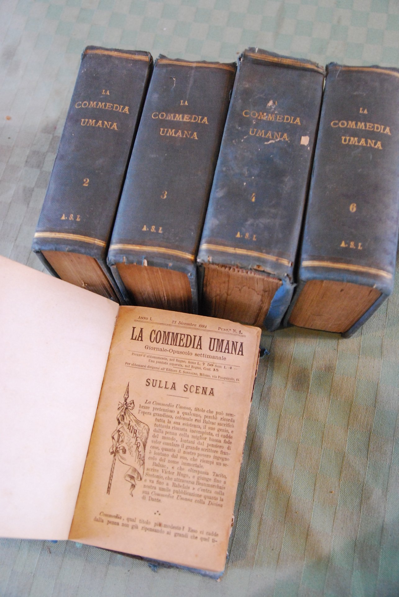 la commedia umana giornale opuscolo settimanale voll.1,2,3,4,6 (manca il vol. 5, dalla puntata 67 alla puntata 81). 1884 .