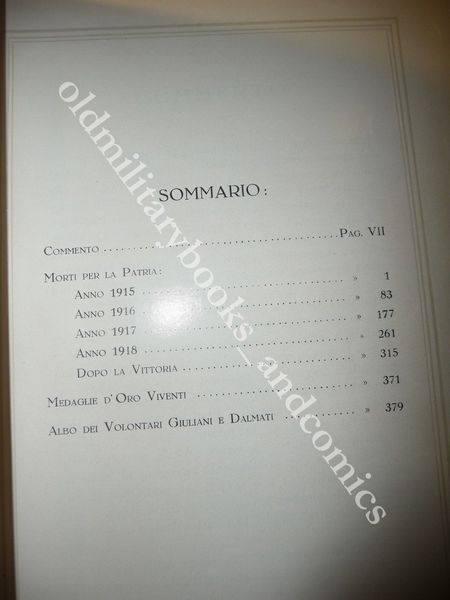 VOLONTARI DELLE GIULIE E DI DALMAZIA ELENCO CADUTI NELLA WWI E M. ORO RILEGATO