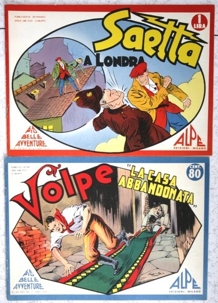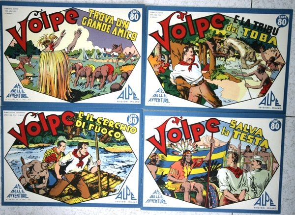 bellissime copie anastatiche di 8 nn della collana Le più belle avventure, di cui abbiamo: per Volpe n.52 La casa abbandonata, n.54 V trova un grande amico, n.55 V e la tribù dei Toba, n.58 V e il cerchio di fuoco, n.60 V salva la testa; per Saetta n.53 S a Londra, n.56 S contro l'Intelligence Service, n.61 S contro Bravel. Tutti sono in perfetto stato, come nuovi.