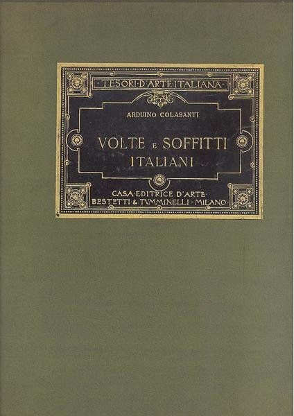 IN 4, pp.XXII, 192 DI TAVOLE in b/n. a piena pg. DI VOLTE E SOFFITI DI PALAZZI ITALIANI FOTOGRAFATE DA ALINARI. COPERTINA EDITORIALE IN TUTTA TELA RIGIDA VERDE CON TITOLO IN ORO ENTRO CORNICE DORATA SU FONDO NERO, RIPORTATO ANCHE AL DORSO<BR>ENTRO TASSELLO. PRESTIGIOSA OPERA SU VOLTE E SOFFITI ITALIANI DAL 1300 AL 1700.<BR>ARDUINO COLASANTI ( ROMA 1877 - 1935 ), STORICO DELL'ARTE CHE SI OCCUPO' ATTIVAMENTE DEL RESTAURO E DEL RIORDINAMENTO DI MONUMENTI E MUSEI. OPERA FACENTE PARTE DELLA COLLANA TESORI D'ARTE ITALIANA. RARO IN OTTIMO STATO DI CONSERVAZIONE.I D,4161